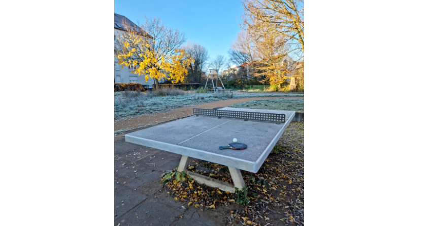 Es wird eine Tischtennisplatte aus Beton gesucht, die in einer Gemeinschaftsunterkunft auf dem Riedberg aufgestellt werden soll.